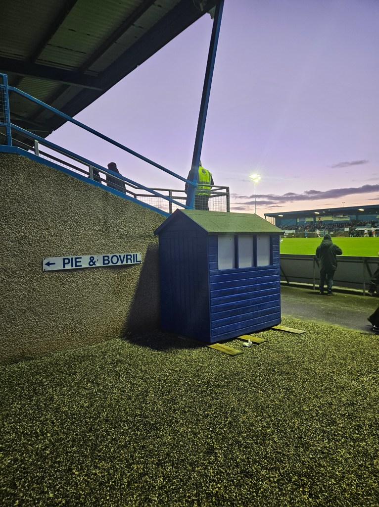 Unfortunately the sign pointed towards the bathrooms, but I was still able to grab the matchday essentials around the corner. After a lackluster mince pie and adequate Bovril, I was ready for kickoff.