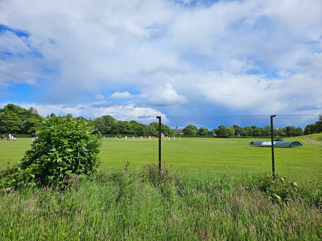 Just a stone’s throw away (50 metres), is the Jim Glennie Park, where Cowie Thistle A.F.C. were playing Echt A.F.C. in the AAFA premier division. Funnily enough, Cowie has also been moved from their usual home, this time for a cricket fixture. A win or draw would seal the league and Cowie’s 4th trophy of the season, where they have been dominated throughout. Echt, playing their final game of the season, could leapfrog Cowie with a win, but would surely end the campaign second with Cowie still due to play two more fixtures.