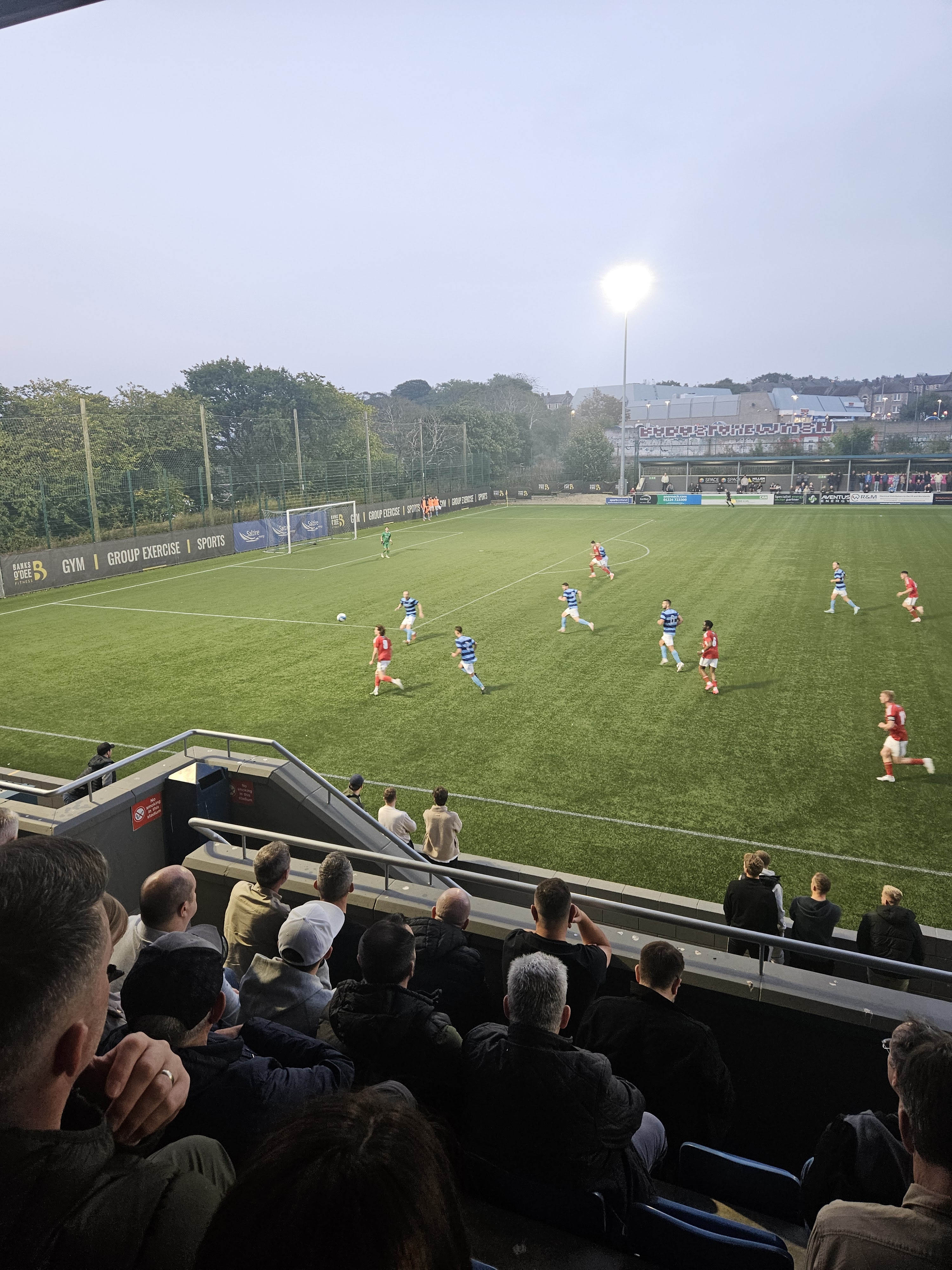Darkness fell and fog began to roll over Balnagask at half time, which saw a defensive alter for Deveronvale. Garry Woods dropped to Centre-Back, looking to subdue Banks o’ Dee’s technical attackers. Deveronvale earnt their biggest chance of the game when a deep ball unleashed Jack Mitchell down the right on the 50th minute, but his shot blazed over the bar.